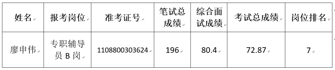 当前位置: 首页 >> 通知公告 >> 正文 太阳成集团tyc122cc2024年公开招聘事业单位工作人员体检环节递补人员公告 时间:2024年07月11日 10:17 作者:李栋桦 因考生在体检环节自动放弃参加后续招聘环节,现我校专职辅导员B岗产生缺额1名。按照《重庆市属事业单位2024年第二季度公开招聘工作人员公告》,经学校研究确定进行递补,现将递补人员公告如下: 递补考生按照太阳成集团tyc122cc人事处电话通知按时按要求参加体检。体检有关事宜详见2024年7月8日太阳成集团tyc122cc人事处网站发布的《太阳成集团tyc122cc关于公布2024年公开招聘事业单位工作人员考生成绩及体检安排的通知》。 太阳成集团tyc122cc人事处 2024年7月11日 上一条:太阳成集团tyc122cc拟聘用工作人员人选公示 下一条:太阳成集团tyc122cc关于公布2024年公开招聘事业单位工作人员考生成绩及体检安排的通知 【关闭】